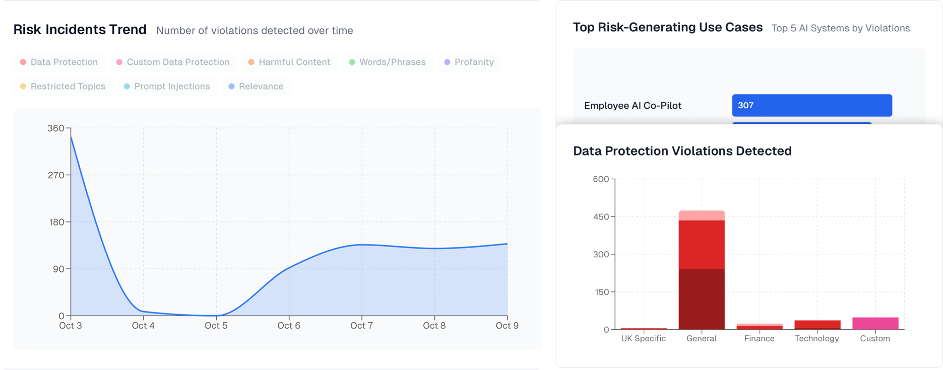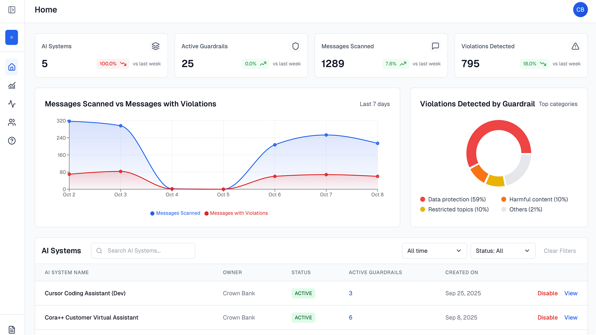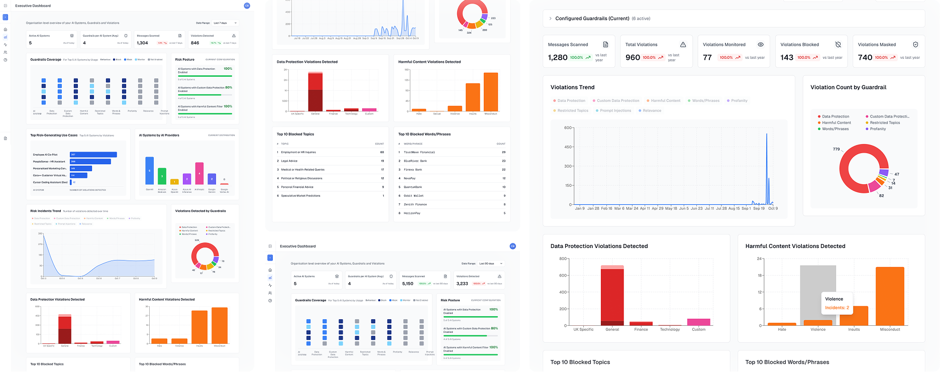 Apply guardrails at runtime. No-code policy builder means compliance and risk teams can act without waiting for engineering.